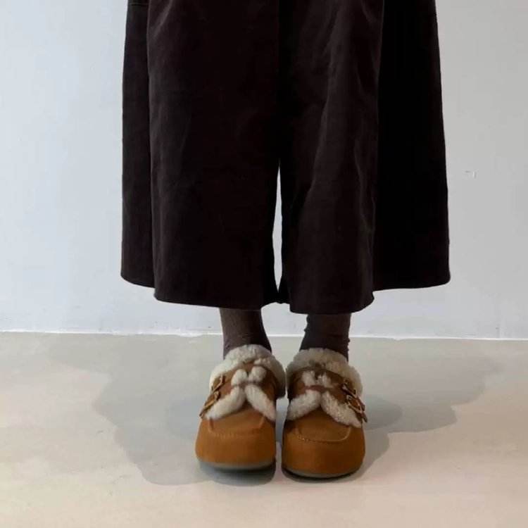 รองเท้าส้นเตี้ย (3-5 ซม.) หนังวัวกลับ พื้นยาง ปิดหัวเท้า สำหรับใส่เป็นรองเท้าแตะ แฟชั่นสไตล์ขนสัตว์