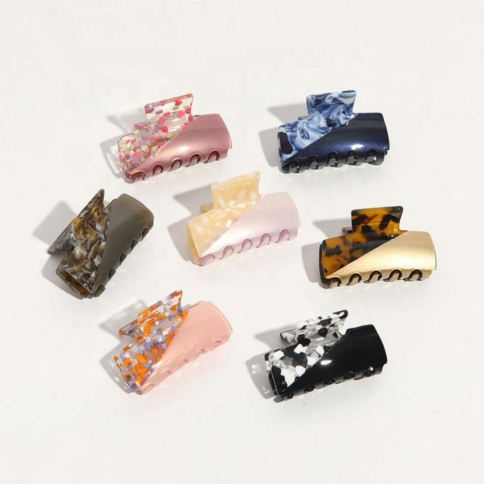 กิ๊บหนีบผมอะคริลิคทรงสี่เหลี่ยมสำหรับผู้หญิงทรงยาวสองสีหวานแบบแฟนซีขนาดกลาง