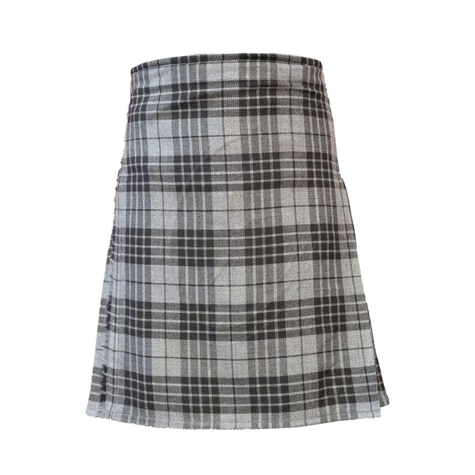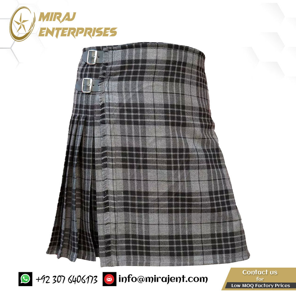 กระโปรงสไตล์กลางเอวยางยืดโลโก้ที่กําหนดเองที่มีคุณภาพสูงสีเทาTartan KiltสําหรับขายสีเทาTartan Kilt Unisex