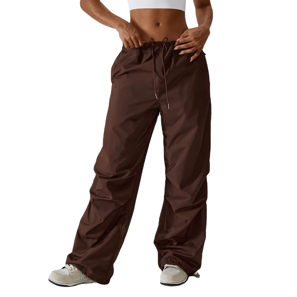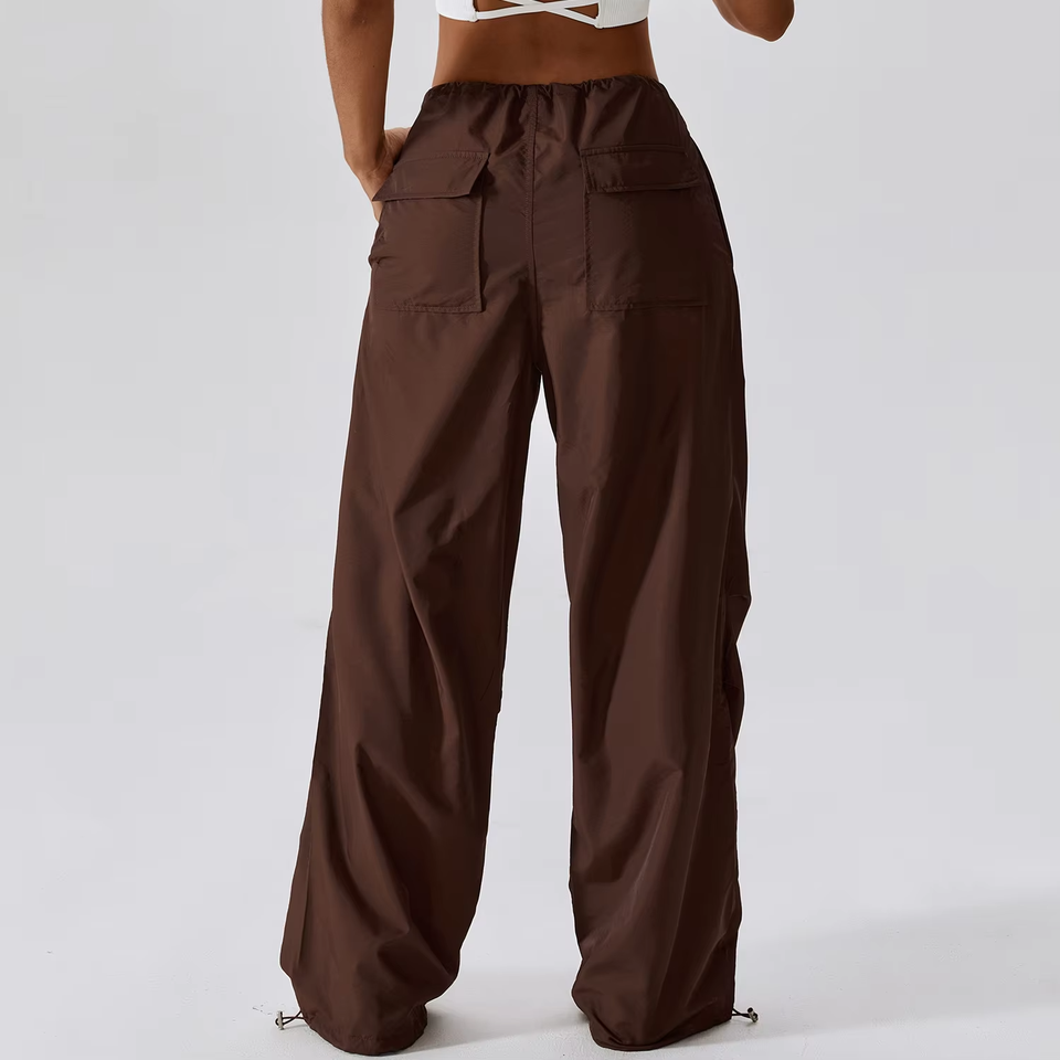 กางเกงคาร์โก้ทรงหลวมสำหรับผู้หญิงกางเกงผ้าแคนวาสแบบมีเชือกรูดด้านหน้าและบางเอวขากว้าง