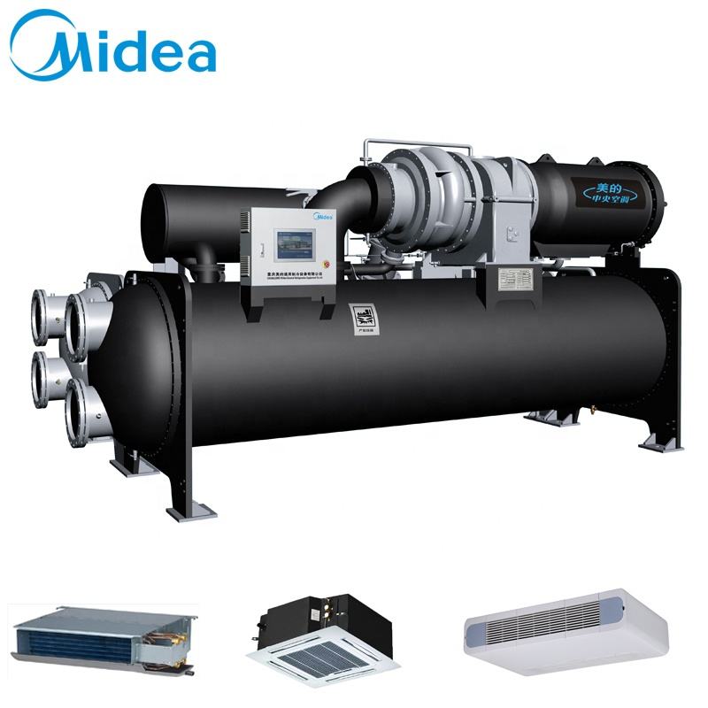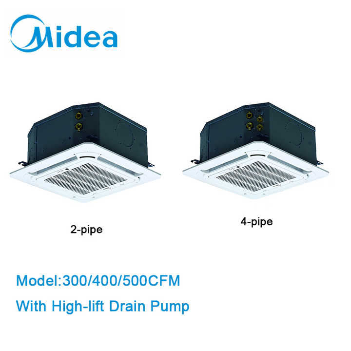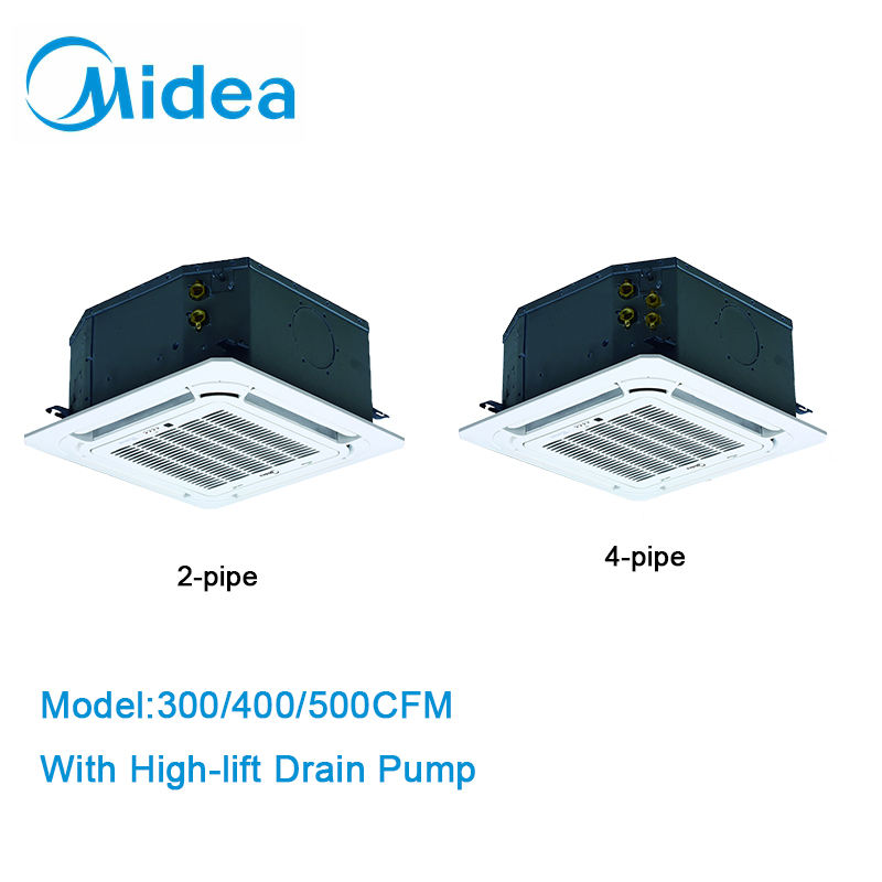 เครื่องปรับอากาศแบบคาสเซ็ต 4 ทิศทาง ขนาดกะทัดรัด 2 ท่อ ยี่ห้อ Midea 220-240V 1 เฟส 50(60Hz) แบบ Heat Pump พร้อมชุดทำความเย็นน้ำ สำหรับสนามบิน