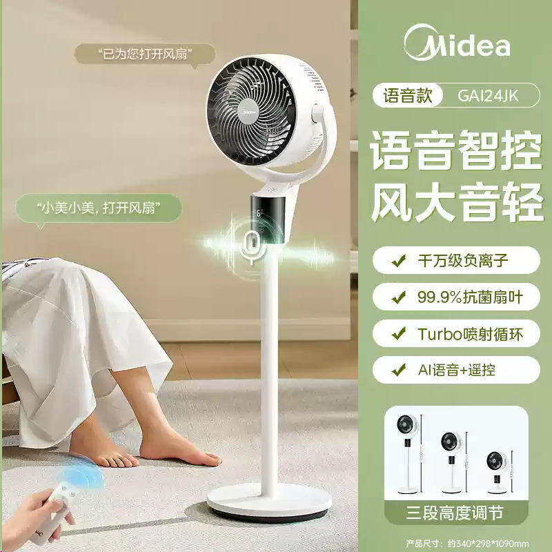 พัดลมตั้งพื้น Midea รุ่น Air Circulator ขนาด 13 17.9 นิ้ว สีดำ พร้อมตัวตั้งเวลาและระบบส่าย สำหรับใช้ในบ้านและห้องนอน