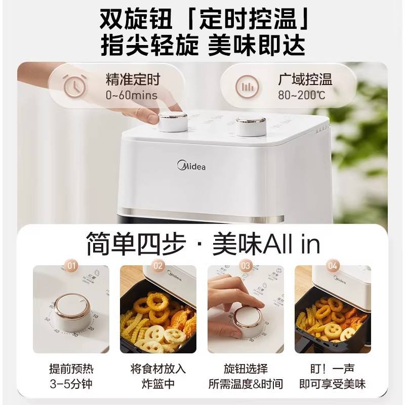 หม้อทอดไร้น้ำมัน Midea 4.5 ลิตร แบบสองแหล่งความร้อน พร้อมหน้าจอแสดงผลเคลือบเซรามิก