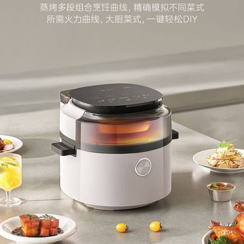 หม้อทอดไร้น้ำมัน Midea 6 ลิตร เตาอบไฟฟ้าอัจฉริยะ พร้อมฟังก์ชั่นอบไอน้ำ ควบคุมด้วยไมโครคอมพิวเตอร์ สีน้ำตาลไม้จันทน์