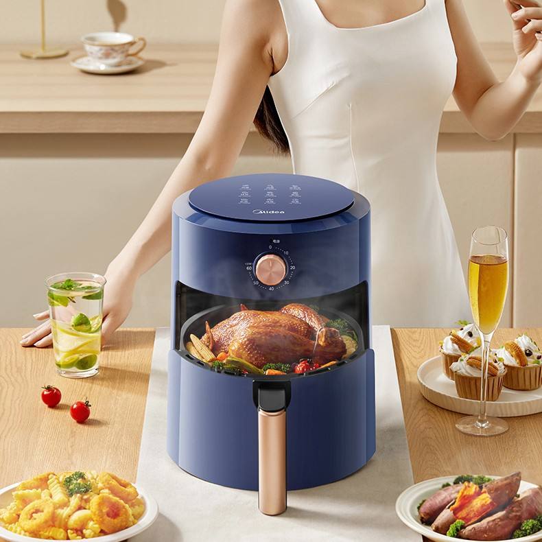 หม้อทอดไร้น้ำมัน Midea สีน้ำเงินเข้ม ขนาด 420x260x280 มม. แบบกลม เคลือบเซรามิก ไฟฟ้าอเนกประสงค์ พร้อมหน้าจอแสดงผลอัจฉริยะ