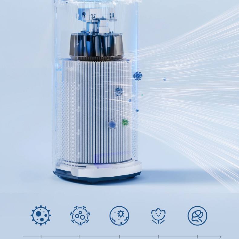เครื่องฟอกอากาศมีเดีย 200 ซีเอฟเอ็มกำจัดฟอร์มาลดีไฮด์ แผ่นกรองคาร์บอนกัมมันต์สำหรับใช้ในบ้าน สีขาว