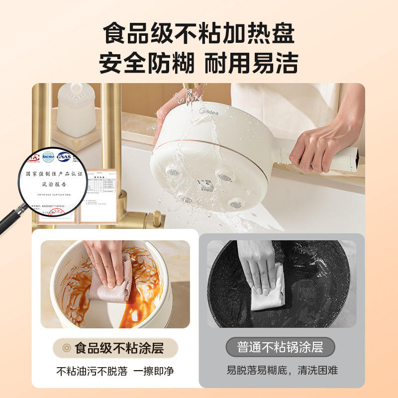 หม้อหุงข้าวไฟฟ้ามีเดีย 1.6 ลิตร หม้อนึ่งอเนกประสงค์ทรงกลมสีขาวสำหรับใช้ในบ้านหอพัก