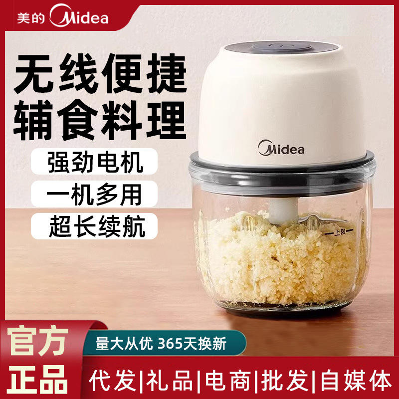 เครื่องบดอาหารไฟฟ้า Midea โถแก้ว 0.5 ลิตร ตัวเครื่องพลาสติก สีขาวแอพริคอต สำหรับบดเนื้อ กระเทียม ใช้ในบ้าน
