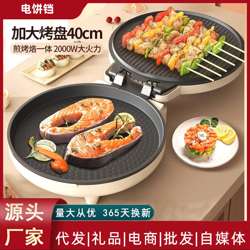เตาไฟฟ้ามีเดีย 35 ซม. แบบสองด้าน ไม่ติดกระทะ เปิดได้ 180 องศา สำหรับย่าง แพนเค้ก และอบขนม