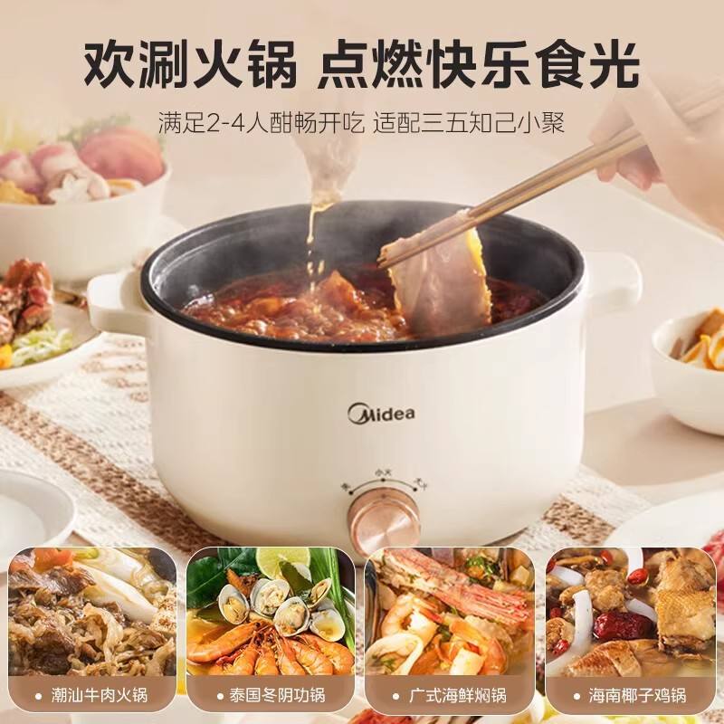 หม้อไฟฟ้ามีเดีย 3 ลิตร หม้ออเนกประสงค์พร้อมฝาแก้วสำหรับใช้ในบ้านและหอพัก