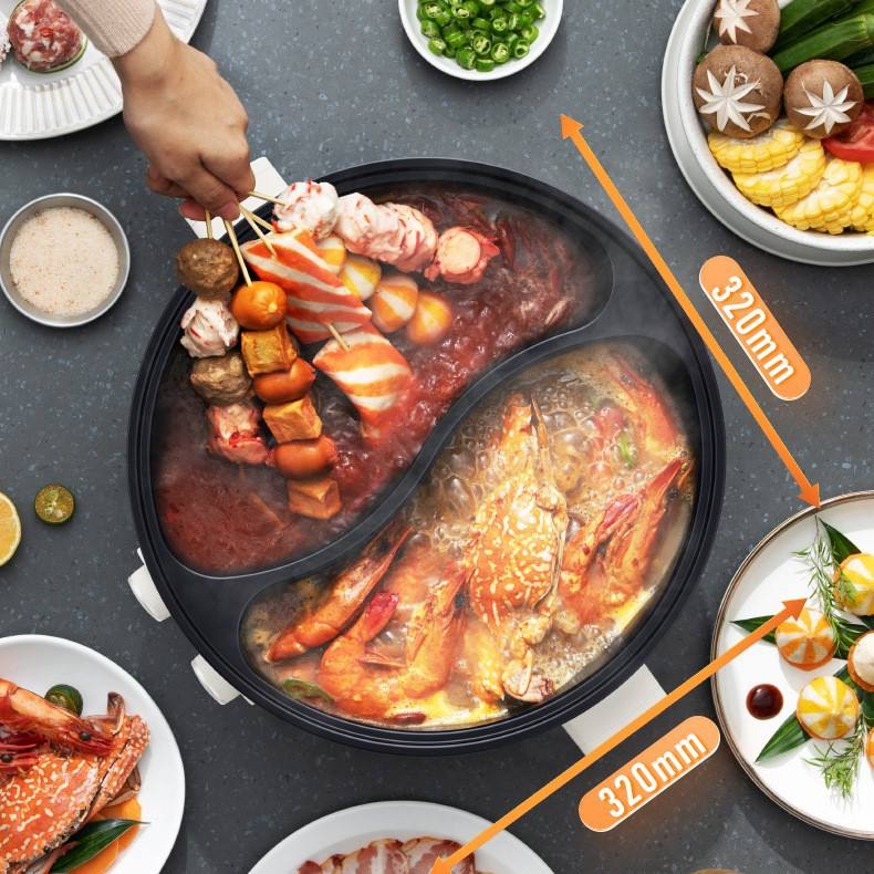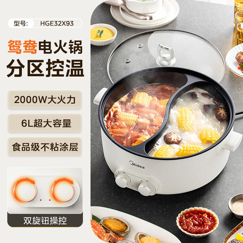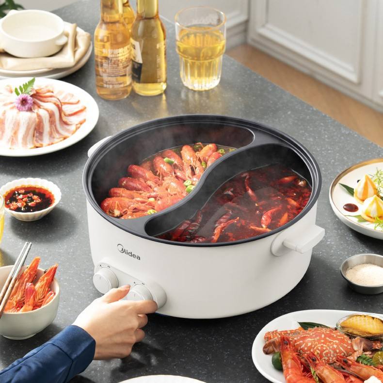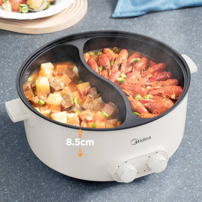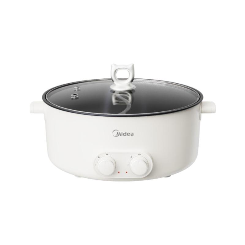 หม้อไฟฟ้ามีเดีย 6 ลิตร ทรงกลม สีขาว หม้อปรุงอาหารอเนกประสงค์ พร้อมหม้อด้านในเคลือบสารกันติด สำหรับทอด ต้ม ผัด
