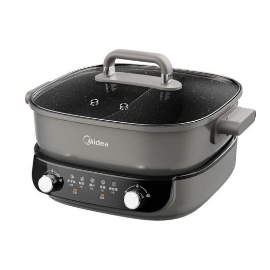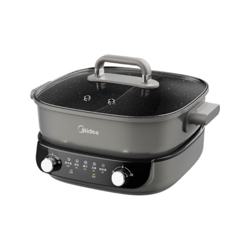 Midea Electric Hot Pot Dual Compartment 9Cm Depth Multi Functional Cooker Titanium Steel Gray 6.1-10L Capacity