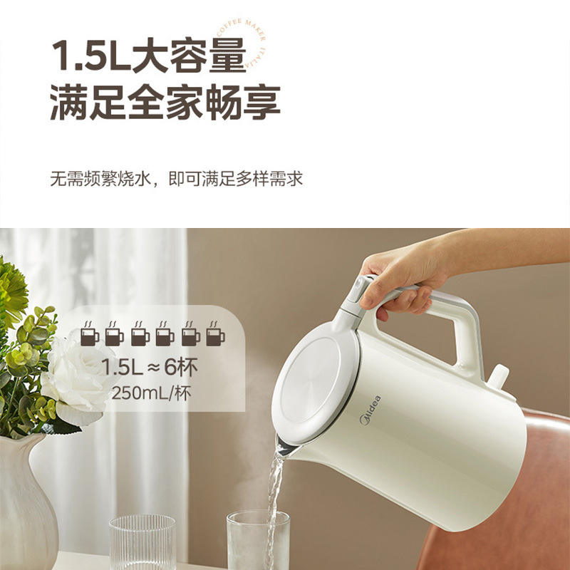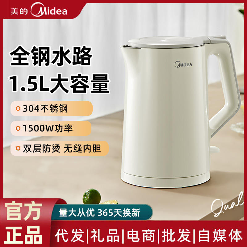 กาต้มน้ำไฟฟ้ามีเดียสแตนเลส 1.7 ลิตร ระบบปิดอัตโนมัติ ฐานหมุนได้ 360 องศา เครื่องทำน้ำร้อนในครัวเรือน