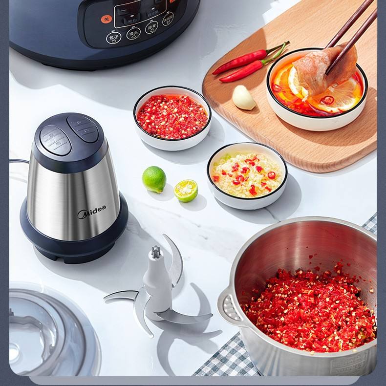 เครื่องบดเนื้อไฟฟ้ามีเดีย 1.6-2.0 ลิตร เครื่องเตรียมอาหารสแตนเลสในครัวเรือน เครื่องปั่นอัตโนมัติอเนกประสงค์