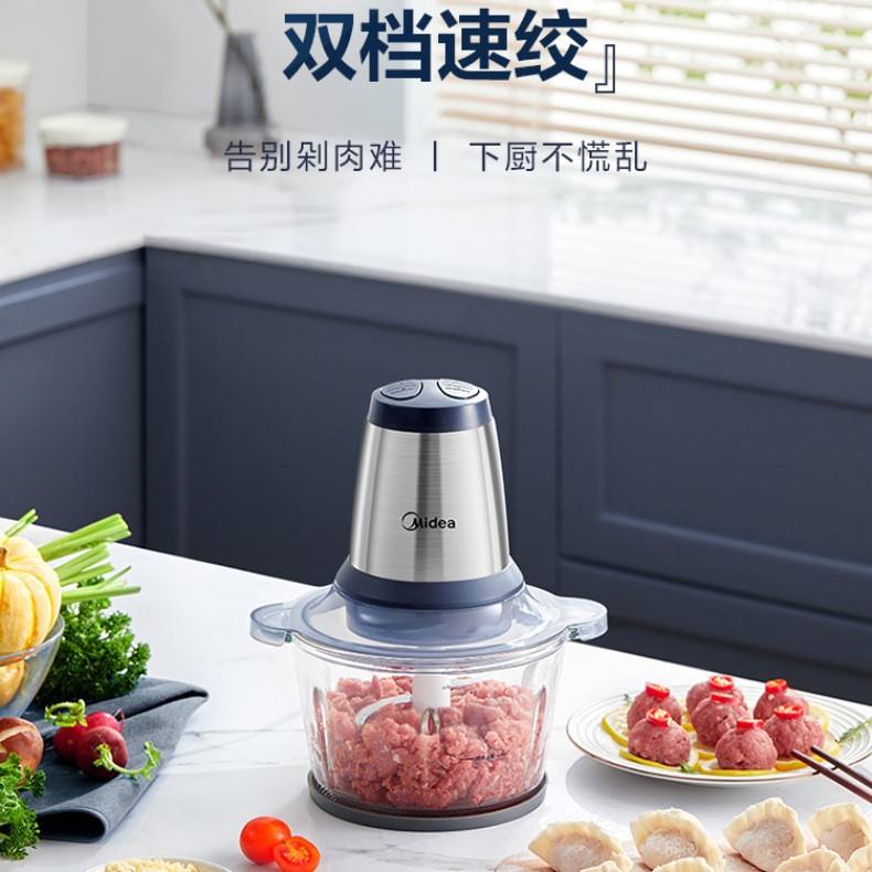 เครื่องบดเนื้อไฟฟ้ามีเดีย 1.8 ลิตร ใบมีดสแตนเลส ตัวเครื่องพลาสติก ปุ่มควบคุมแบบกด เครื่องเตรียมอาหารอเนกประสงค์