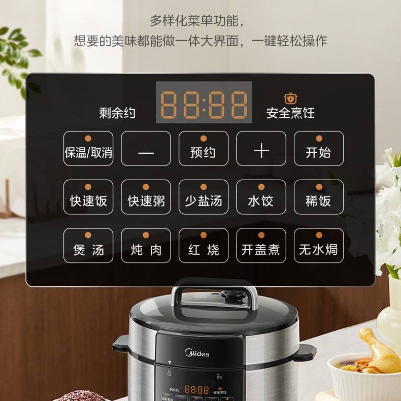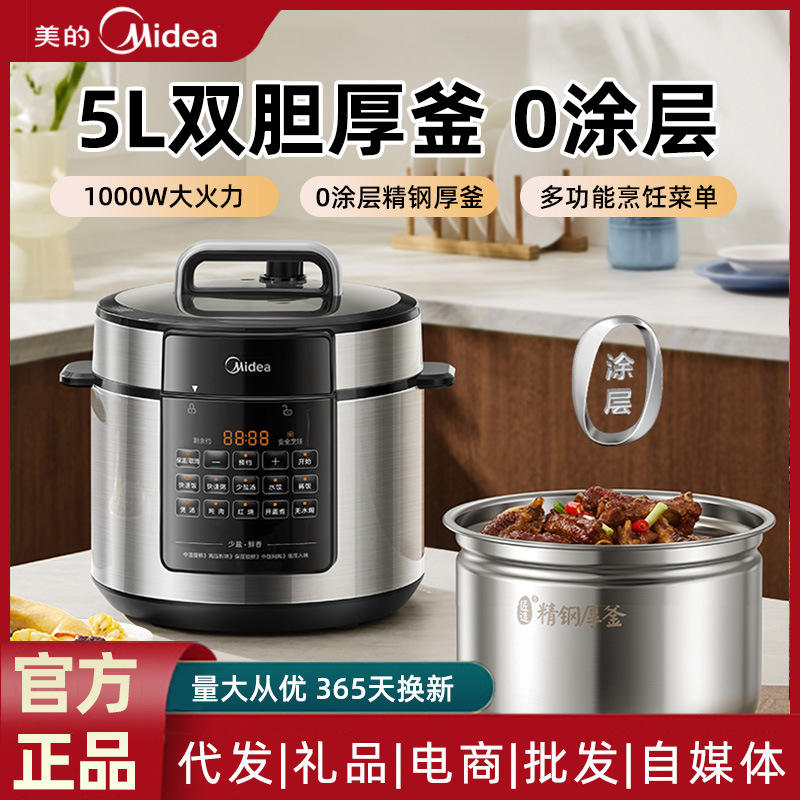 หม้อหุงข้าวไฟฟ้ามีเดีย 5 ลิตร หม้อในสแตนเลส หม้อหุงข้าวอเนกประสงค์อัจฉริยะสำหรับใช้ในบ้านและหอพัก