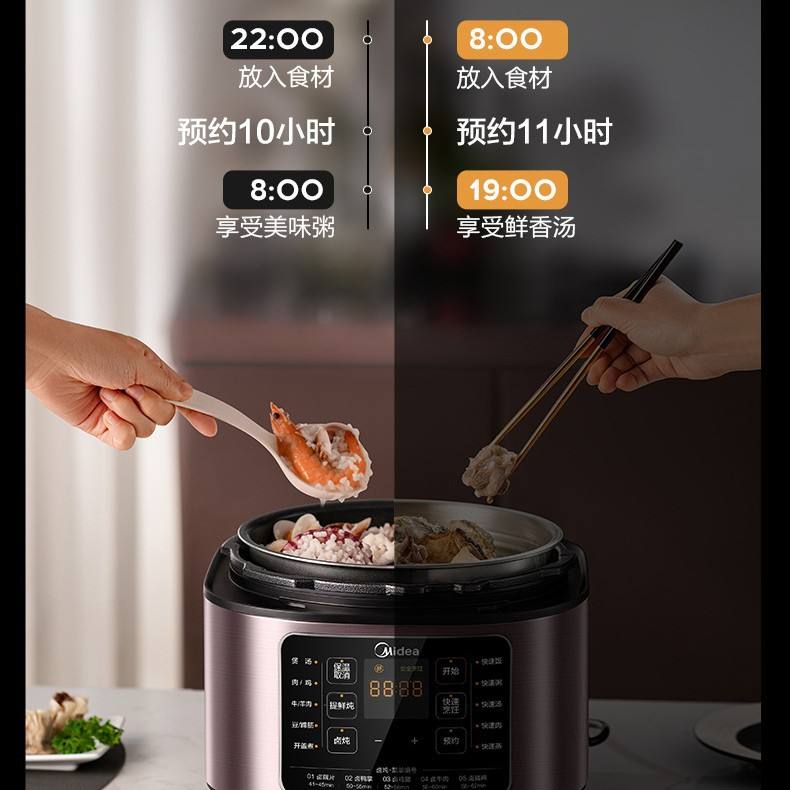 หม้อหุงข้าวไฟฟ้ามีเดีย 5 ลิตร สแตนเลสสตีล ใช้งานง่ายเพียงปุ่มเดียว พร้อมฟังก์ชั่นหลากหลายและตั้งเวลาอัจฉริยะ