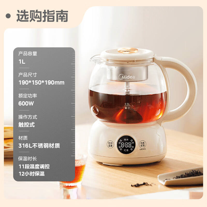 เครื่องชงชาไฟฟ้ามีเดีย 1 ลิตร พร้อมระบบควบคุมอุณหภูมิ ปิดอัตโนมัติ สีแอปริคอท