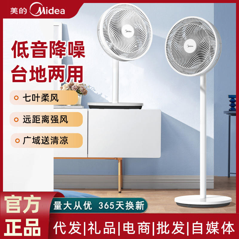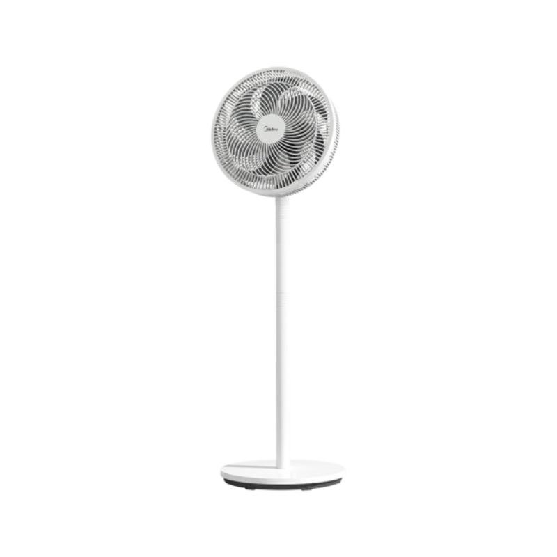 พัดลมตั้งพื้น Midea สีขาวโพลาร์ มอเตอร์ AC ดีไซน์เงียบ ปรับส่ายได้ กระจายลมแนวตั้ง ใช้ในครัวเรือน