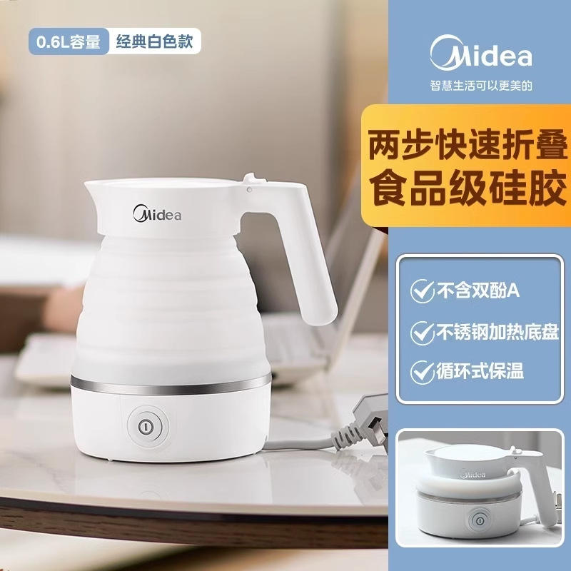 กาต้มน้ำไฟฟ้าแบบพับได้ Midea ขนาด 1 ลิตร พกพาสะดวก พร้อมฟังก์ชั่นอุ่นร้อน สำหรับการเดินทาง หอพัก และใช้ในบ้าน