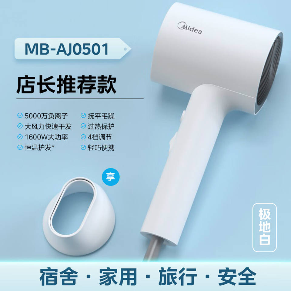 เครื่องเป่าผมมีเดีย 1600W ระบบไอออนิก แรงลมสูง ป้องกันความร้อน สำหรับนักเรียน