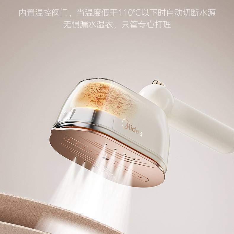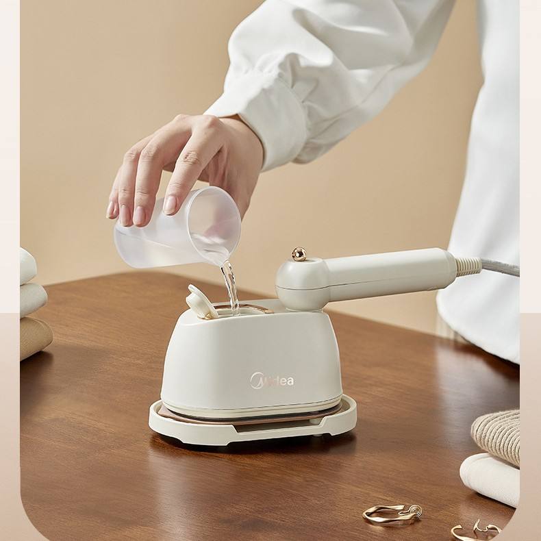 เครื่องรีดผ้าไอน้ำแบบมือถือ Midea สีขาวนวล ความจุ 0.8 ลิตร ใช้งานด้วยระบบไฟฟ้าและกลไก รีดผ้าไอน้ำแบบพกพาสำหรับใช้ในบ้าน