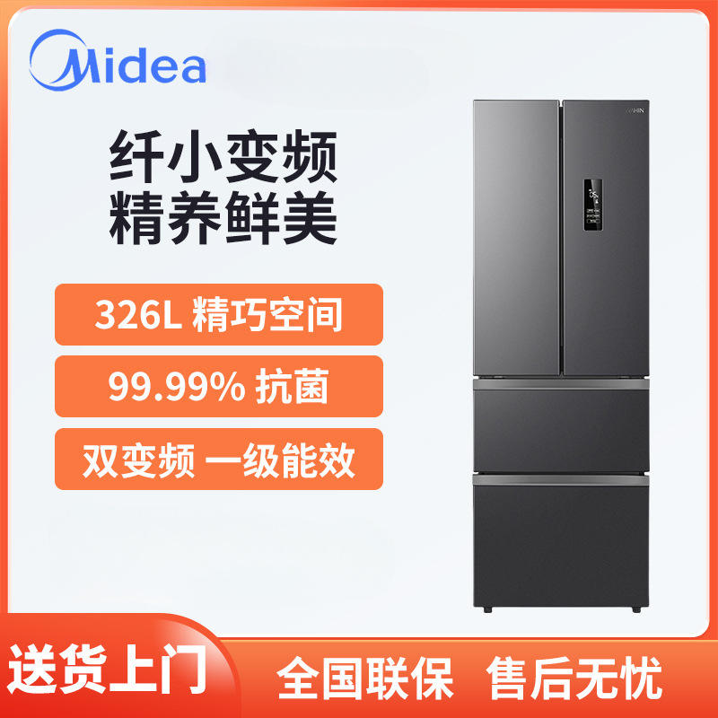 ตู้เย็นมีเดีย ฮัวหลิง แบบประตูฝรั่งเศส 326 ลิตร คอมเพรสเซอร์คู่ ระบบฟรอสต์ฟรี ประหยัดพลังงาน สำหรับใช้ในบ้าน
