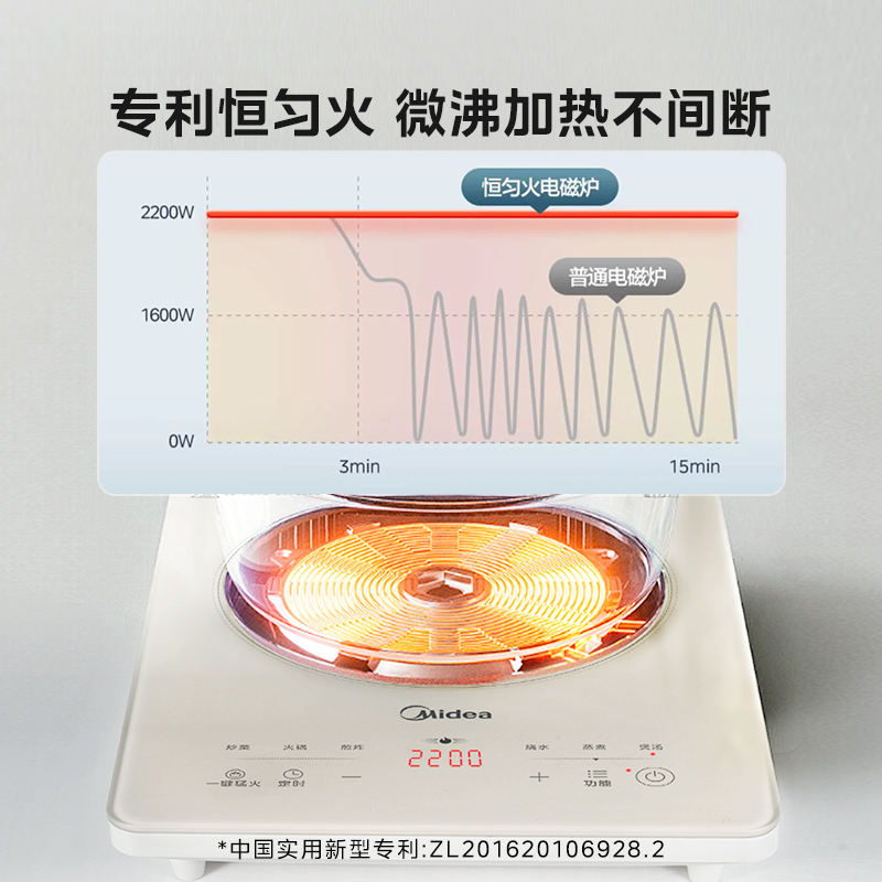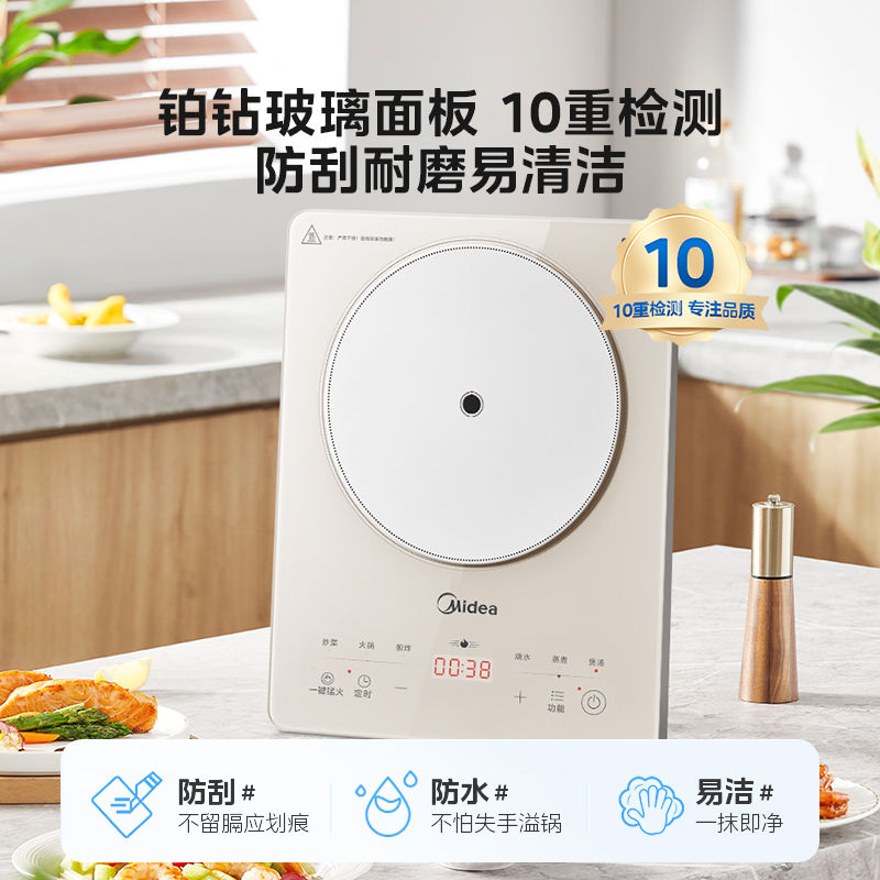 เตาแม่เหล็กไฟฟ้า Midea 2200W รุ่น Platinum Diamond แผงควบคุมแบบสัมผัส เตาเดี่ยว สำหรับทำอาหารที่บ้าน
