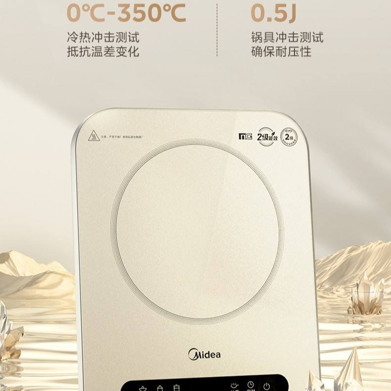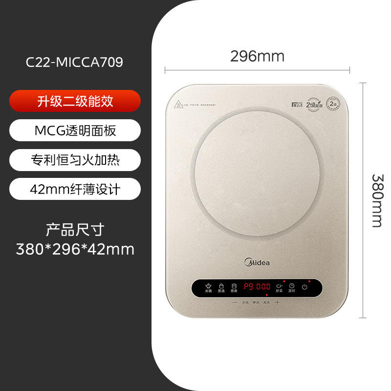 เตาแม่เหล็กไฟฟ้ามีเดีย หัวเดียว สีแชมเปญโกลด์ แผงควบคุมแบบสัมผัส กระจกไฟฟ้า 2200 วัตต์