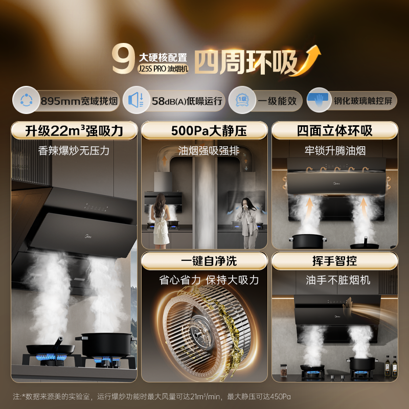 เครื่องดูดควันมีเดีย รุ่น CXW-280-J25S PRO สีดำ ดูดควันด้านข้าง 22 ลูกบาศก์เมตร/นาที แรงดูด 500pa พร้อมระบบทำความสะอาดตัวเอง