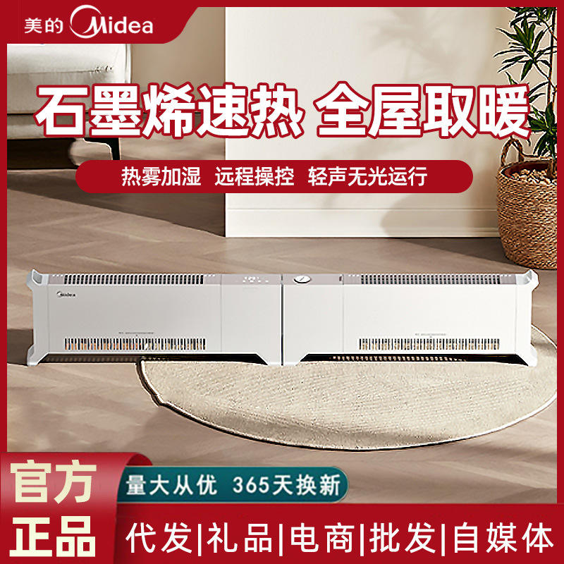 เครื่องทำความร้อนแบบติดผนัง Midea สีขาว ขนาด 20 ตร.ม. ระบบทำความร้อนด้วยไฟฟ้า พร้อมรีโมทคอนโทรล และระบบเพิ่มความชื้น