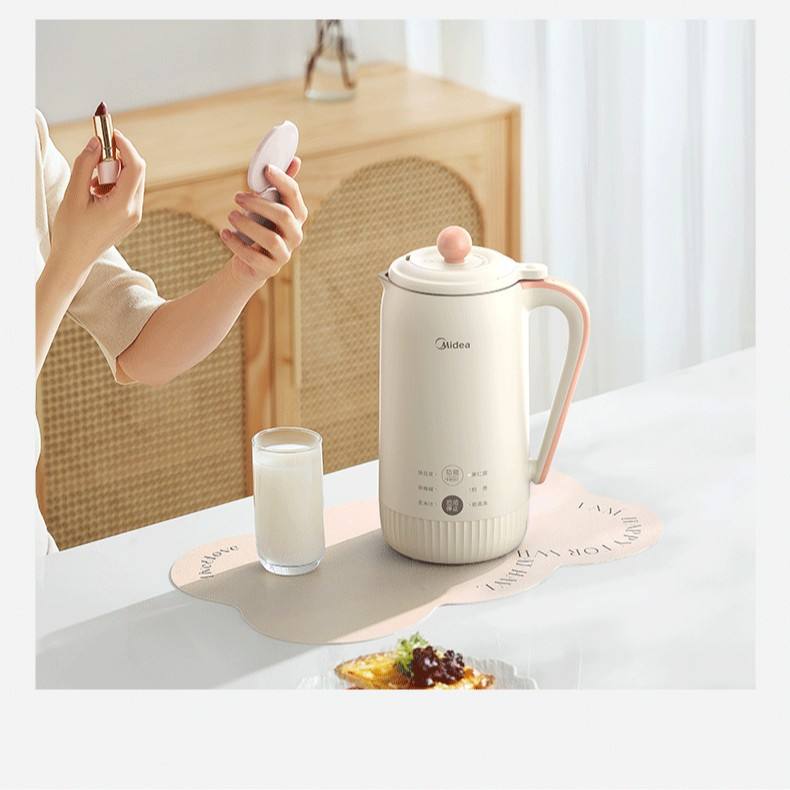 เครื่องทำนมถั่วเหลืองมีเดีย 0.6-0.8 ลิตร เครื่องปั่นมินิอเนกประสงค์ไฟฟ้าพร้อมฟังก์ชั่นจองเวลา ตัวเครื่องพลาสติกสีแอปริคอทอ่อน