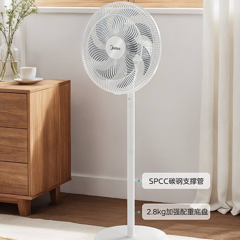 พัดลมตั้งพื้น Midea สีขาว มอเตอร์ AC ขนาด 40 ซม. ปรับส่ายได้ ตั้งเวลาได้ 2-8 ชั่วโมง สำหรับบ้านและหอพัก