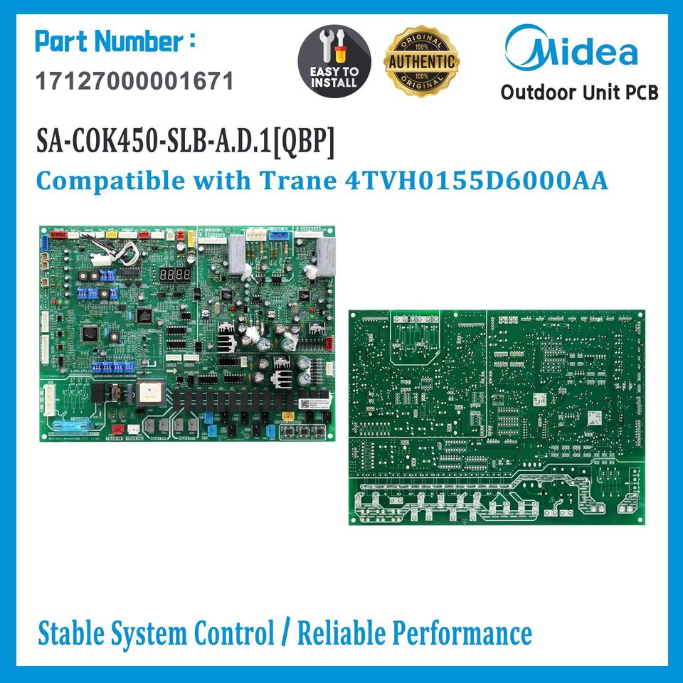 แผงควบคุมหลัก17127000001671 Midea VRF กลางแจ้งชิ้นส่วนอะไหล่ทดแทน HVAC สำหรับ4TVH0155D6000AA มีเทรน PCB