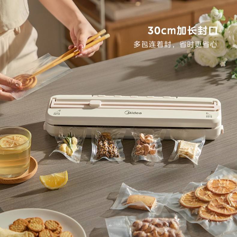 เครื่องซีลสูญญากาศมีเดีย 30 ซม. รุ่นขยายความยาว สำหรับใช้ในครัวเรือน เครื่องถนอมอาหาร สีขาว MJ-KF31