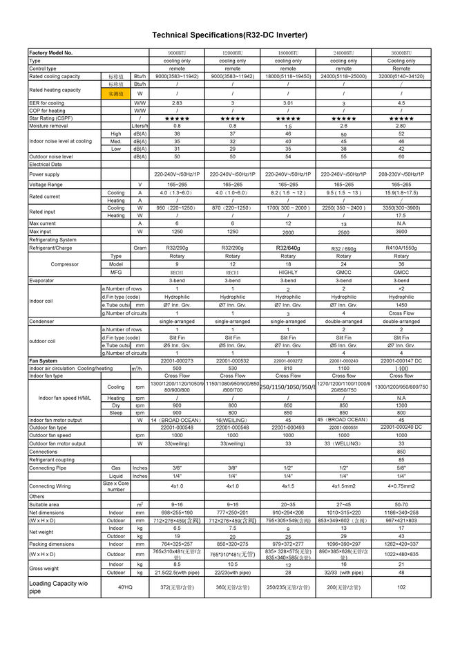 ประเภทสารทำความเย็น:R410A32