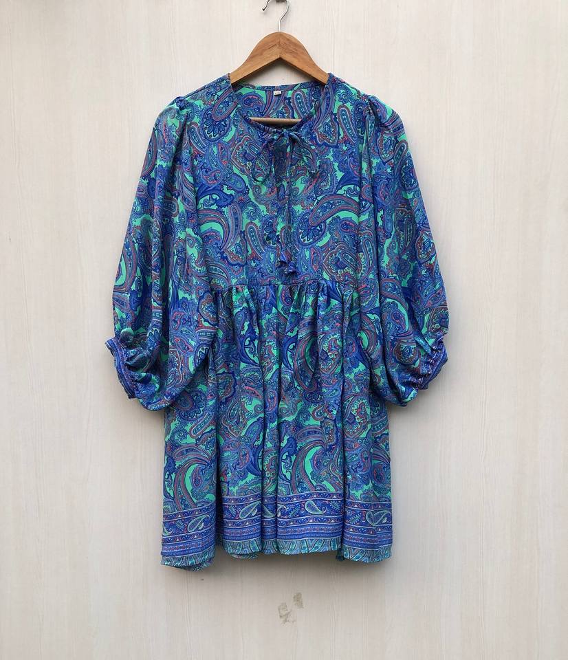 เดรสสั้นคอวีลึก ผูกเชือก ปิดด้วยเชือก ลายดอกไม้พิมพ์บล็อก สไตล์ลำลอง ใส่สบาย เหมาะสำหรับฤดูร้อน ชุดนอนสำหรับผู้หญิง