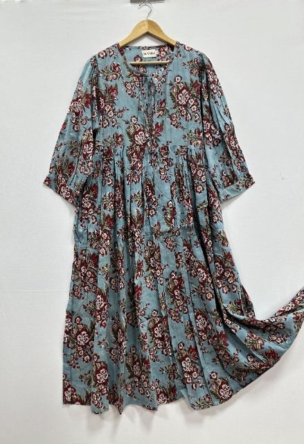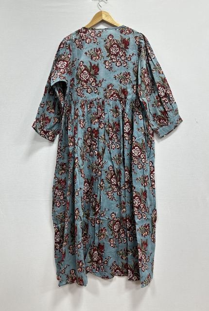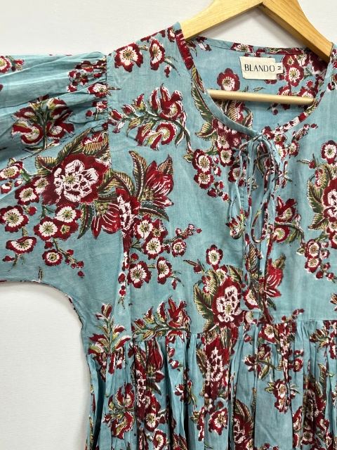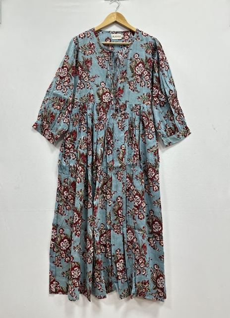 เดรสมิดิเดรสมินิเดรสเดรสพิมพ์ลายดอกไม้ยาวบล็อกคอลึกพร้อมเชือกปิดเดรสยาวทำมือ