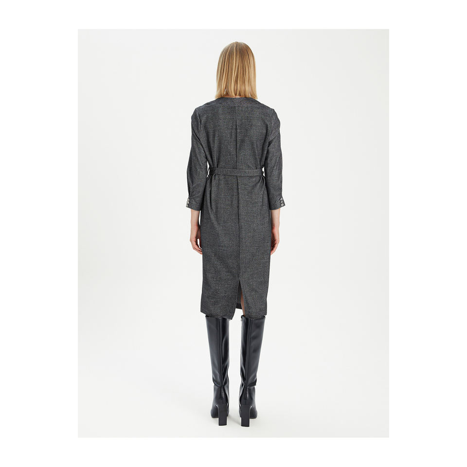 BGN ชุดเดรสยาวปานกลาง ผ้าผสมวิสโคส คอปก แฟชั่นสำหรับคนทำงาน รุ่น W24D092