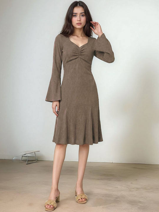 ชุดเดรสยาวปานกลางสำหรับผู้หญิง แขนยาว ผ้าเนื้อบางเบา สวมใส่สบาย พิมพ์ลายดอกไม้ เอวธรรมชาติ เป็นมิตรกับสิ่งแวดล้อม