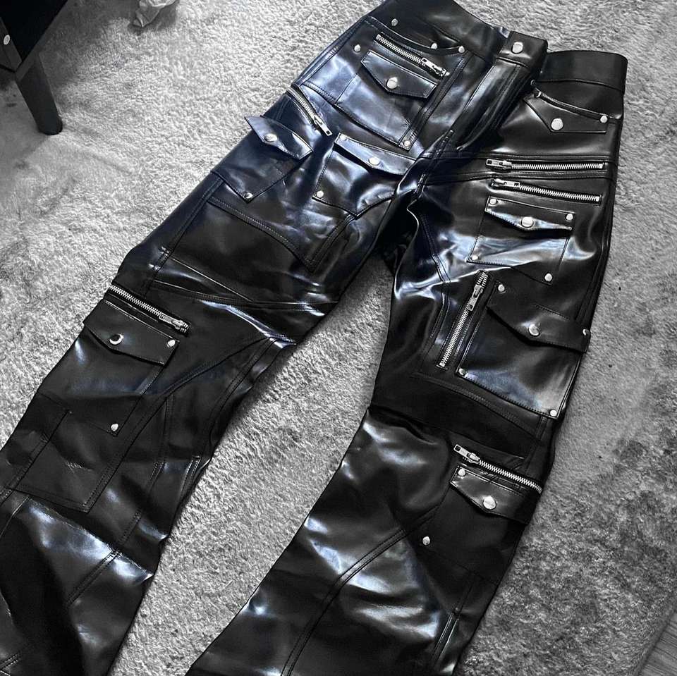 กางเกงหนังหลายกระเป๋า Midnight Armor สีดำ รุ่น Noir Dominion Tactical พร้อมซิป Vanguard สีดำ