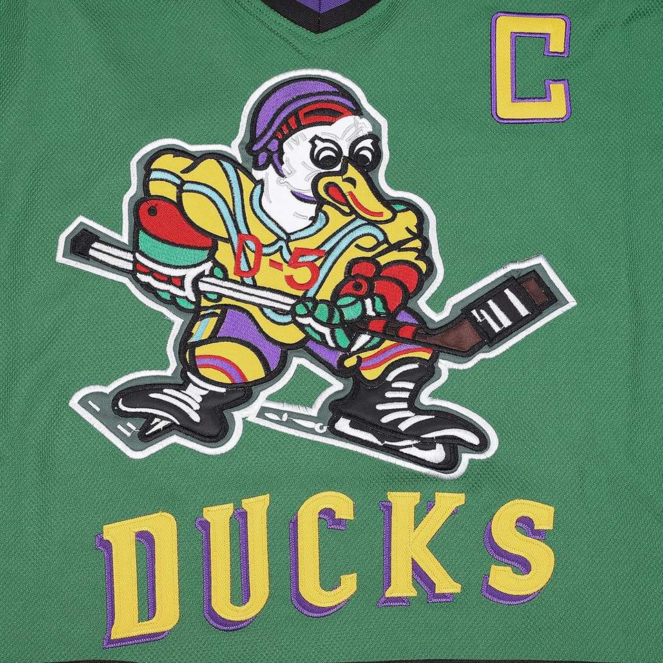 เสื้อเจอร์ซี่รูปเป็ดทรงอำนาจ #96ชาร์ลีคอนเวย์ #99อดัมแบงค์เสื้อกีฬาฮอกกี้90S สำหรับผู้ชายและผู้หญิง