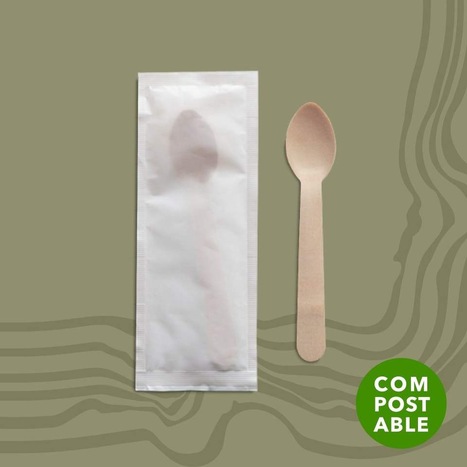 Mignon Eco-Friendly Wood Slush Spoons Single Wrapped in Compostable Paper Small Mini Measuring and Serving Spoon for Cafe Use