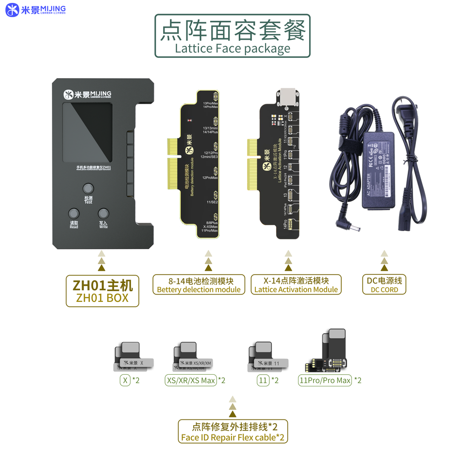 Mijing เครื่องทดสอบการกู้คืน Face Id ZH01,เครื่องบัดกรีดอตแมตริกแบบไม่ต้องใช้แบตเตอรี่สำหรับ Iphone X Xr Xs 11 12 13 14 Pro Max