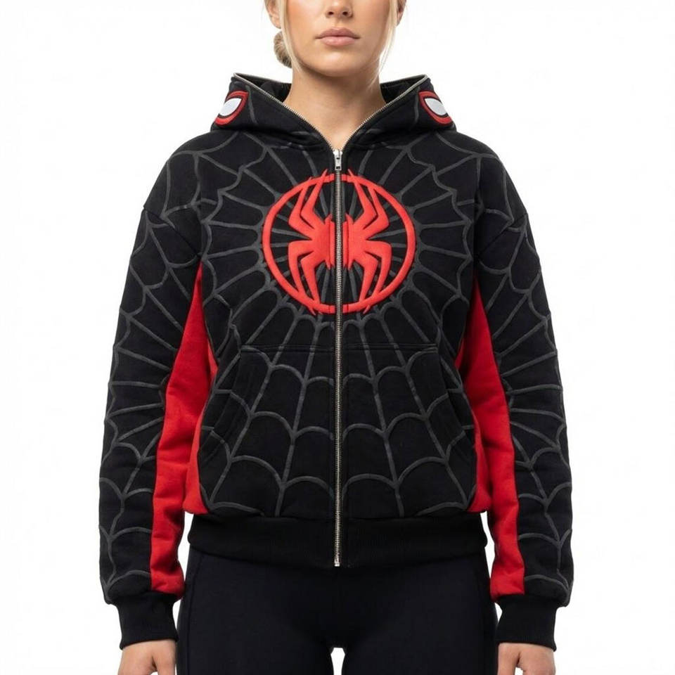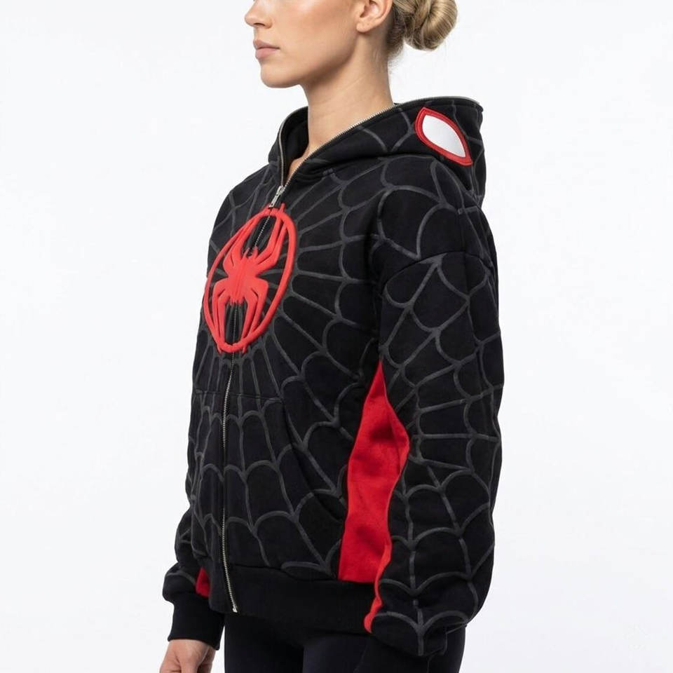 เสื้อฮู้ดซิปอัพลายสไปเดอร์เวิร์ส Miles Morales Spider-Man ผ้าฟลีซรักษ์โลก 350 กรัม สตรีทแวร์ แจ็คเก็ตซูเปอร์ฮีโร่ ของขวัญสำหรับแฟนเกมเมอร์