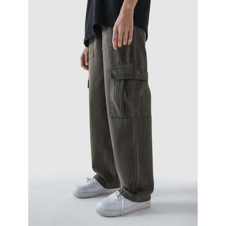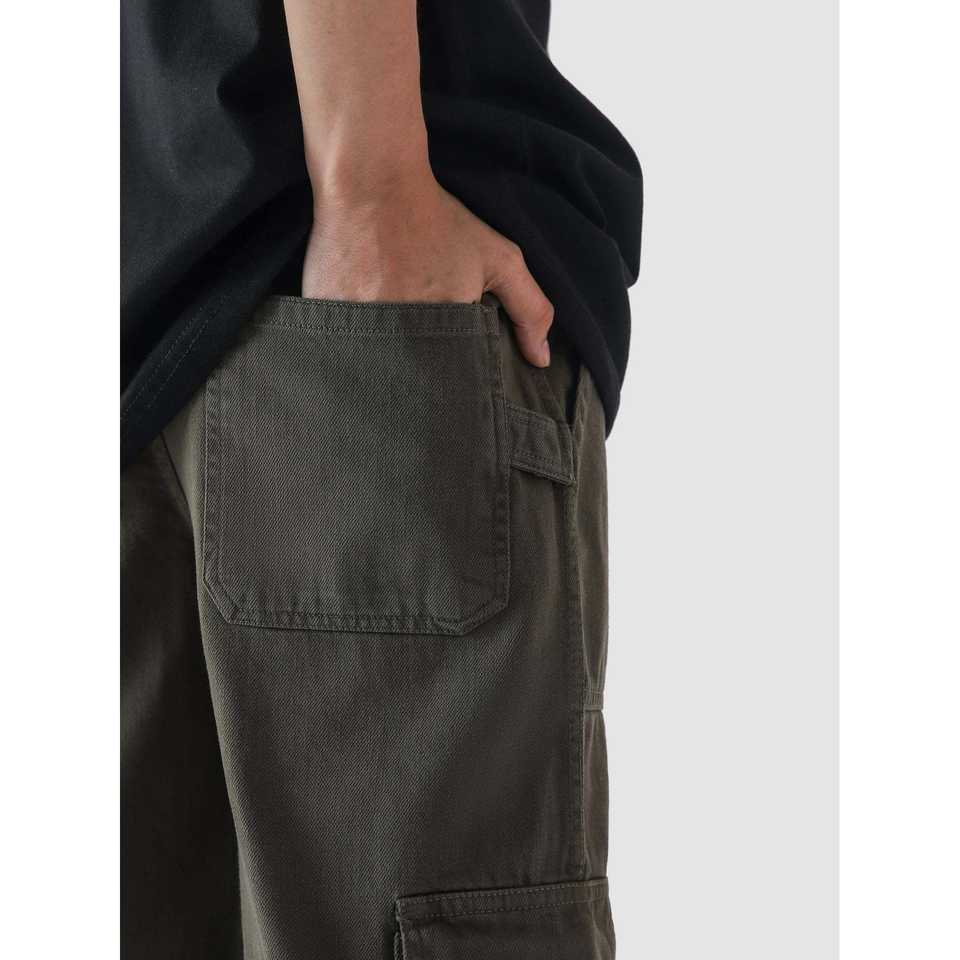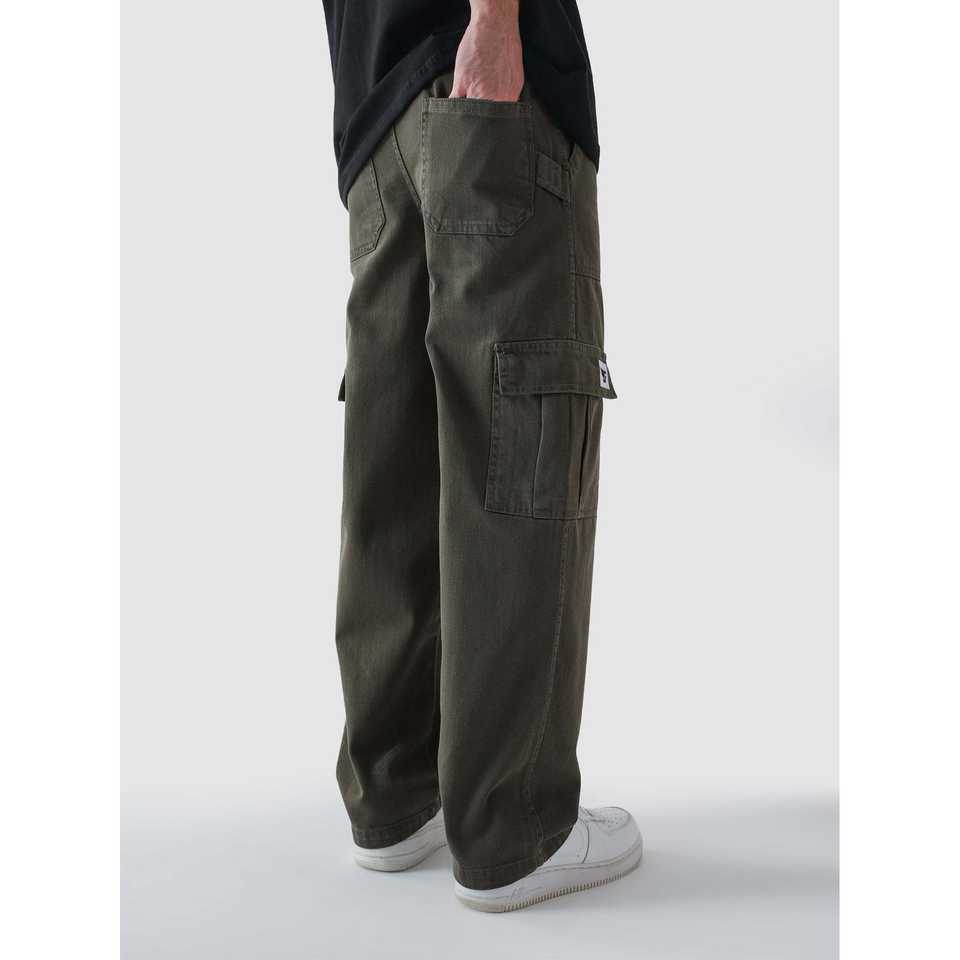 กางเกงคาร์โก้สีเขียวทหาร รุ่น VII ผ้าแคนวาสคอตตอน 100% ปรับแต่งโลโก้ได้ ทรงตรง แต่งซิป ล้างสีสันสดใส เอวต่ำ ไซส์ XL