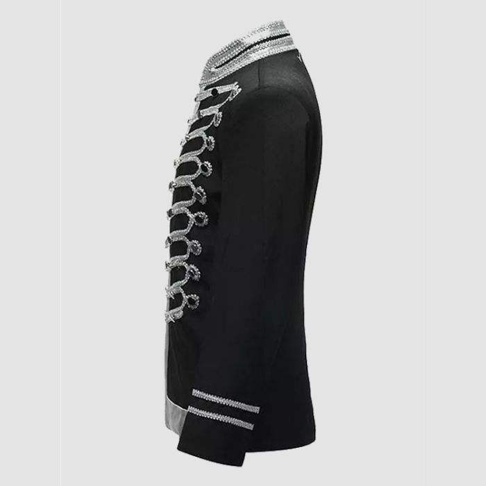 เสื้อเบลเซอร์ทหารแบบกระดุมแถวเดียวสีดำดีไซน์กระดุมหลายเม็ด