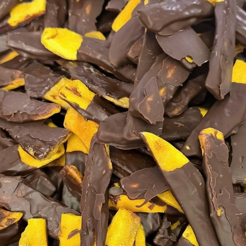 ขนมมะม่วงเคลือบช็อกโกแลตนม ผลิตจากมะม่วงอบแห้ง นำเข้าจากเวียดนาม สำหรับขายส่ง