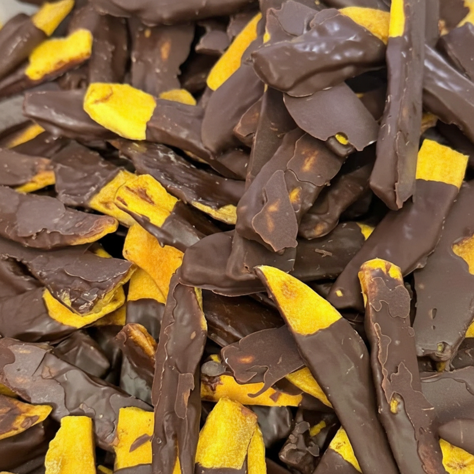 ขนมมะม่วงเคลือบช็อกโกแลตนม ผลิตจากมะม่วงอบแห้ง นำเข้าจากเวียดนาม สำหรับขายส่ง