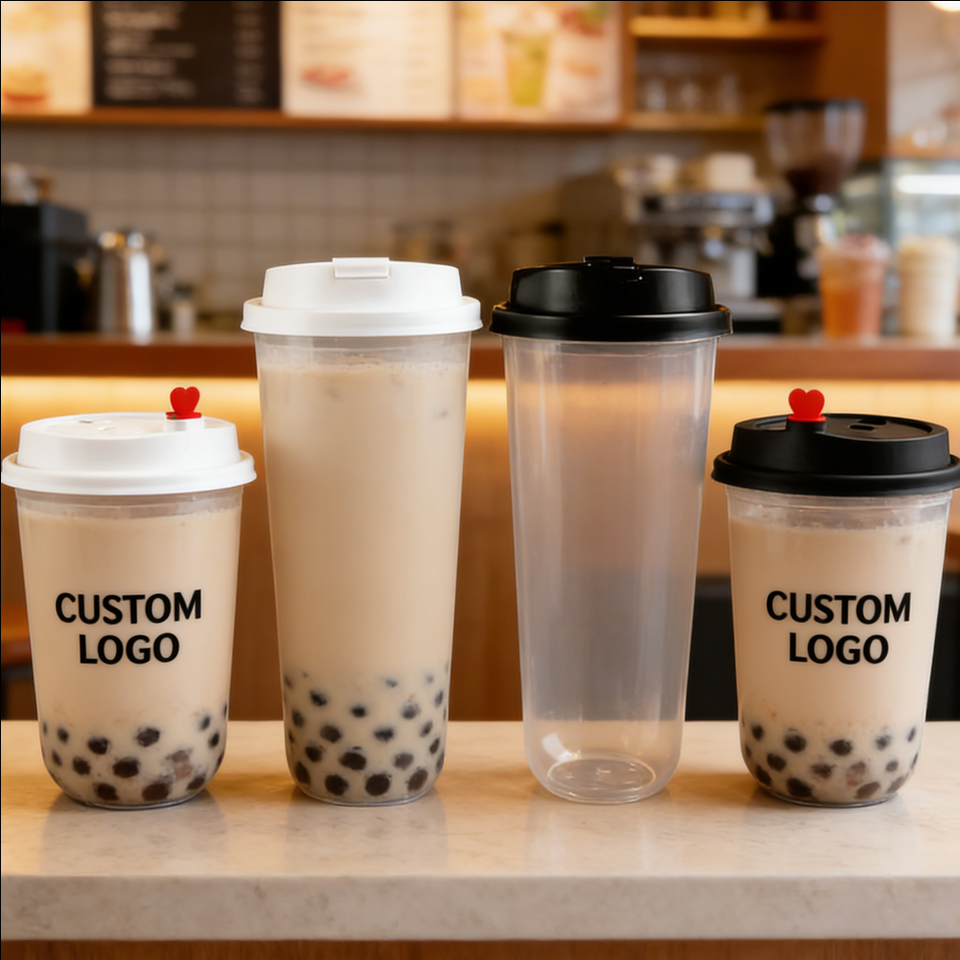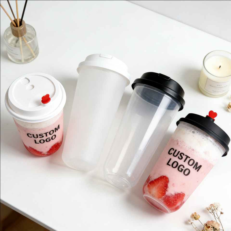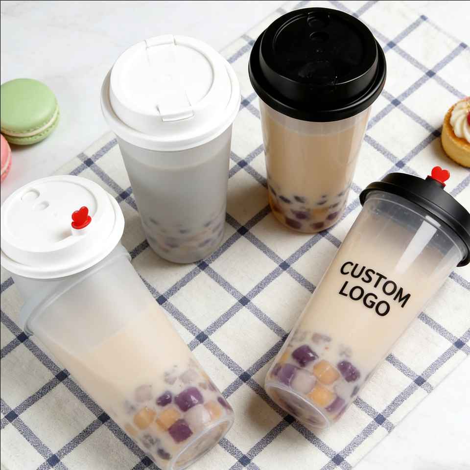 แก้วชานมพลาสติกใสฝ้าขนาด 16 ออนซ์ แบบผนังเดียว 90 มม. พร้อมฝาและหลอด เป็นมิตรกับสิ่งแวดล้อม พิมพ์โลโก้ได้ตามต้องการ ใช้แล้วทิ้ง
